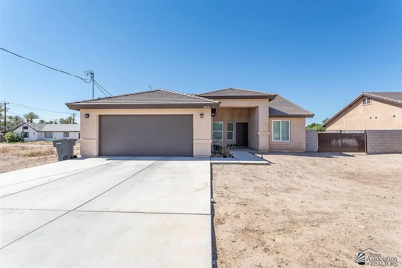 Modern 3-bedroom, 2-bath home built in 2022 with an open split-floor plan, granite countertops, tile flooring throughout, vaulted ceilings, and an extended covered patio. Located on a spacious, fully fenced lot with block walls for added privacy.
