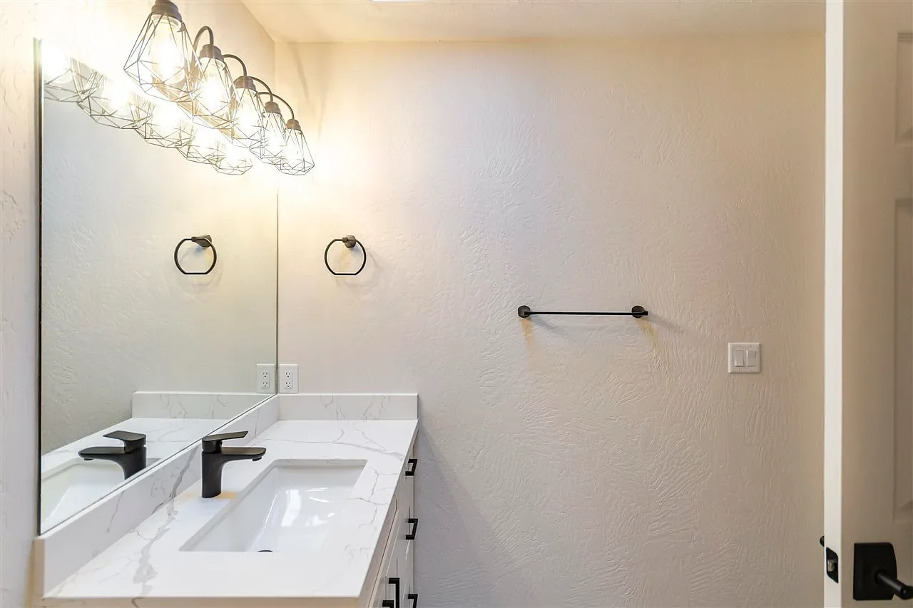 This home features brand-new kitchen, bathroom, and laundry room cabinets, all topped with elegant quartz countertops. Updated sinks and modern fixtures complete the fresh, cohesive look throughout.
